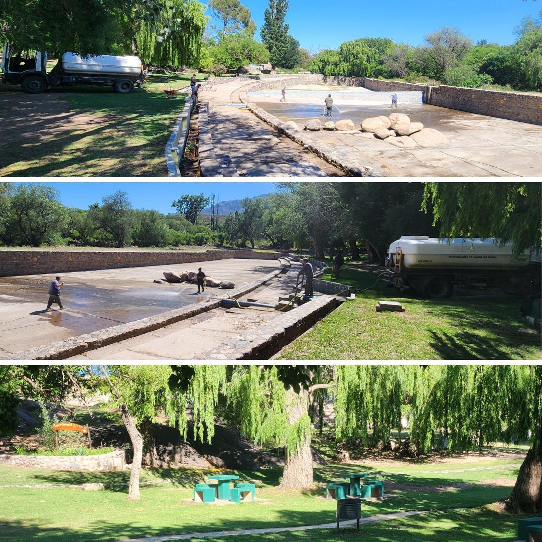 En el Camping y Balneario Municipal Calabalumba, en tanto, se ejecutaron tareas de limpieza, desmalezado, recambio de luminarias y mantenimiento de las piletas de cara a la próxima temporada estival. Paralelamente, continúa el Plan de Bacheo y Reparación de calles, junto con trabajos de nivelación, relleno y regado en arterias de tierra para optimizar la circulación.