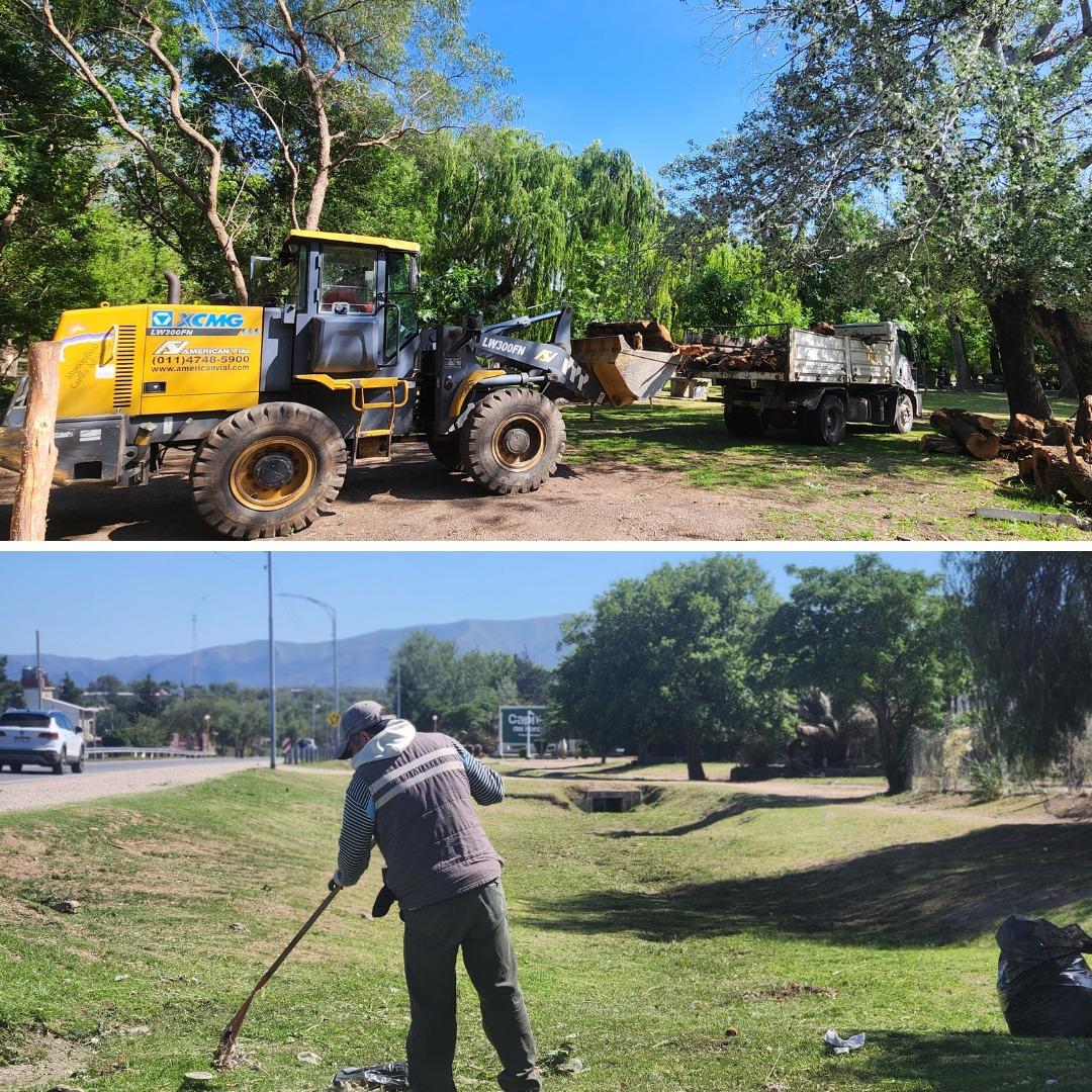 Las intervenciones también se extendieron a distintas plazas barriales y a los sectores próximos a las vías del tren, donde se realizaron podas, desmalezado y limpieza general. Además, en los accesos por Ruta 38, se realizó la limpieza y el mantenimiento de banquinas y colectoras, acciones que mejoran la seguridad vial en los ingresos a la ciudad. Estas tareas, que corresponden originalmente a Vialidad Nacional, fueron asumidas por el municipio ante la reciente desintegración del organismo por parte del gobierno nacional.