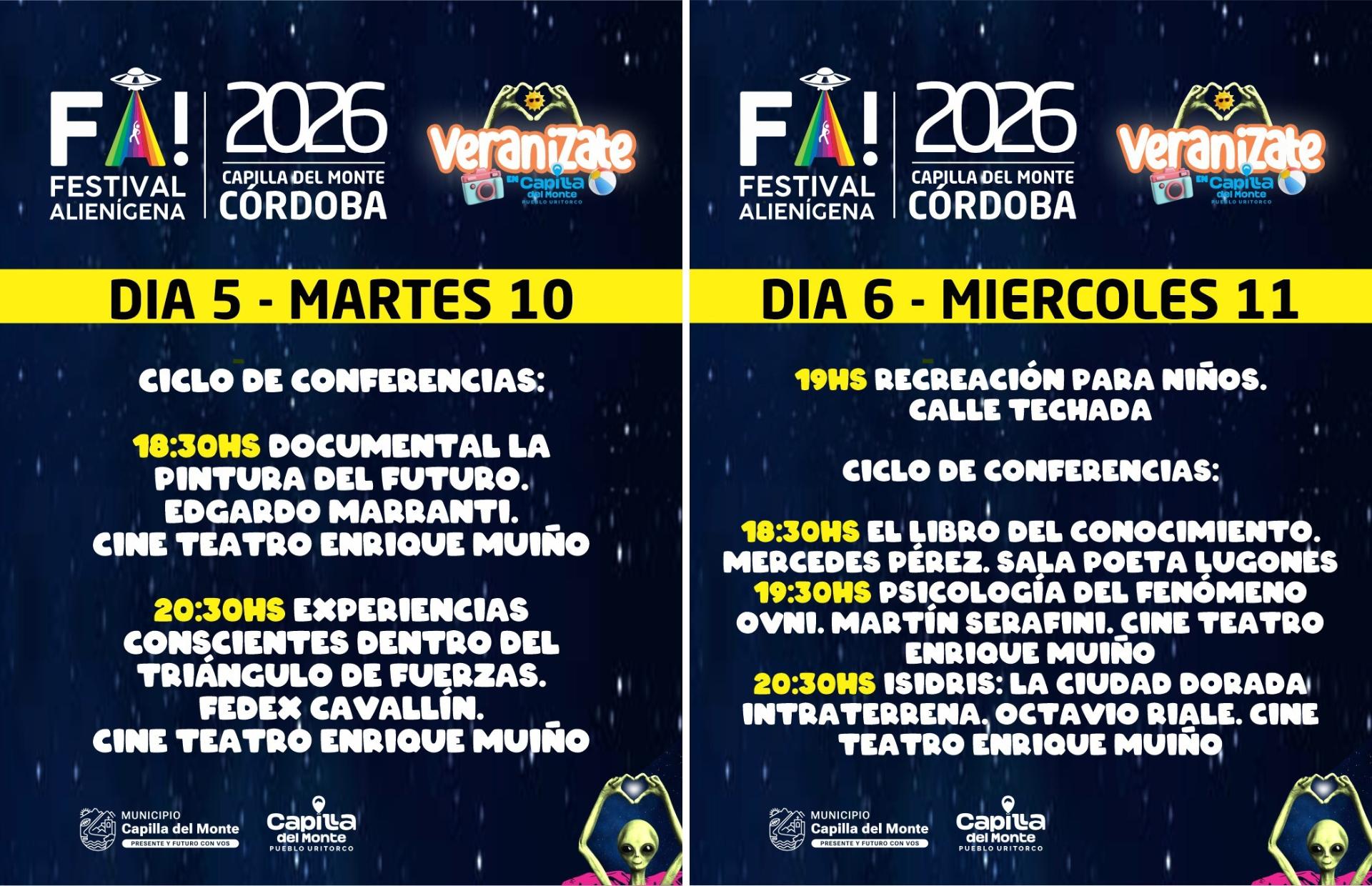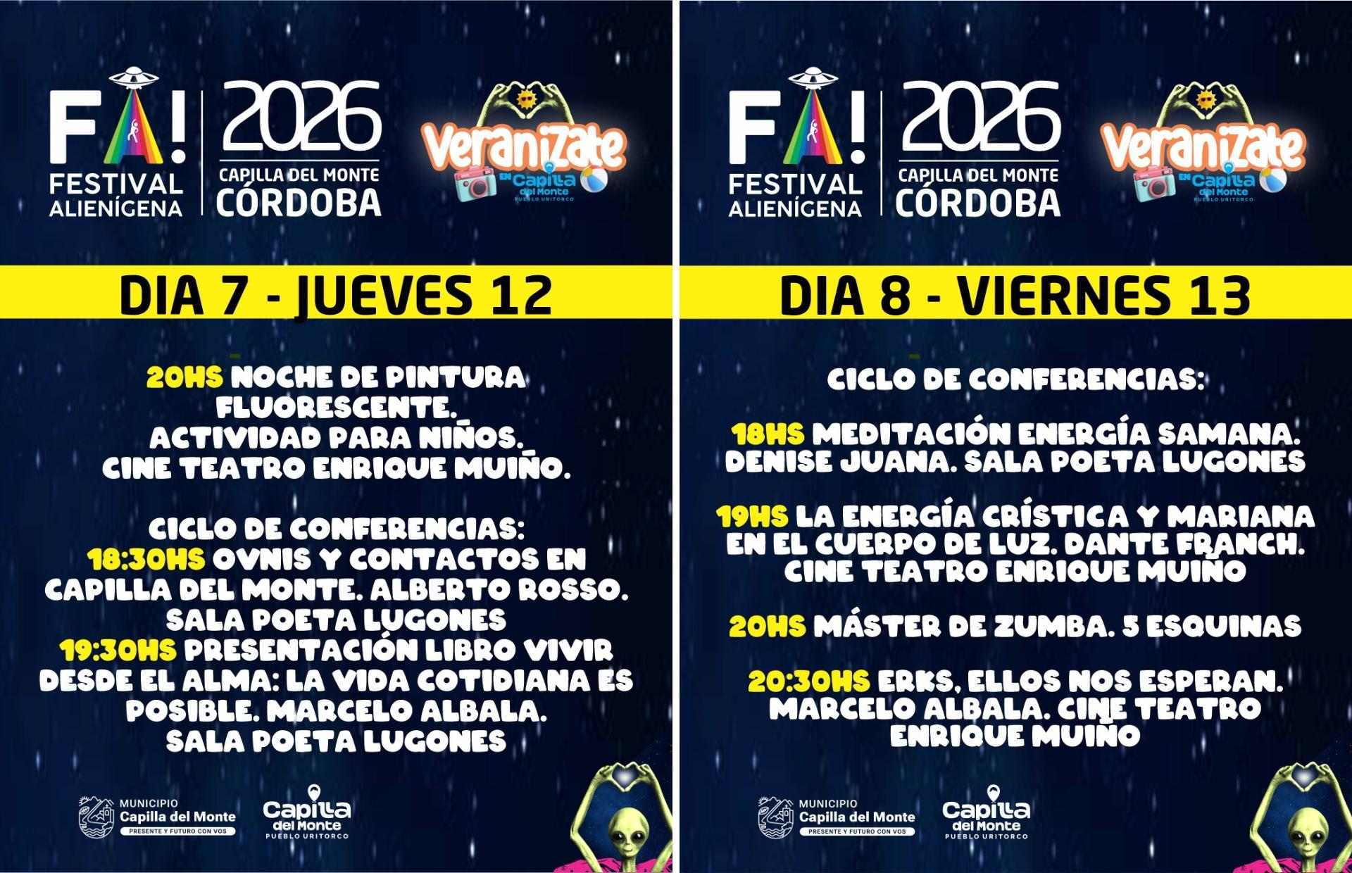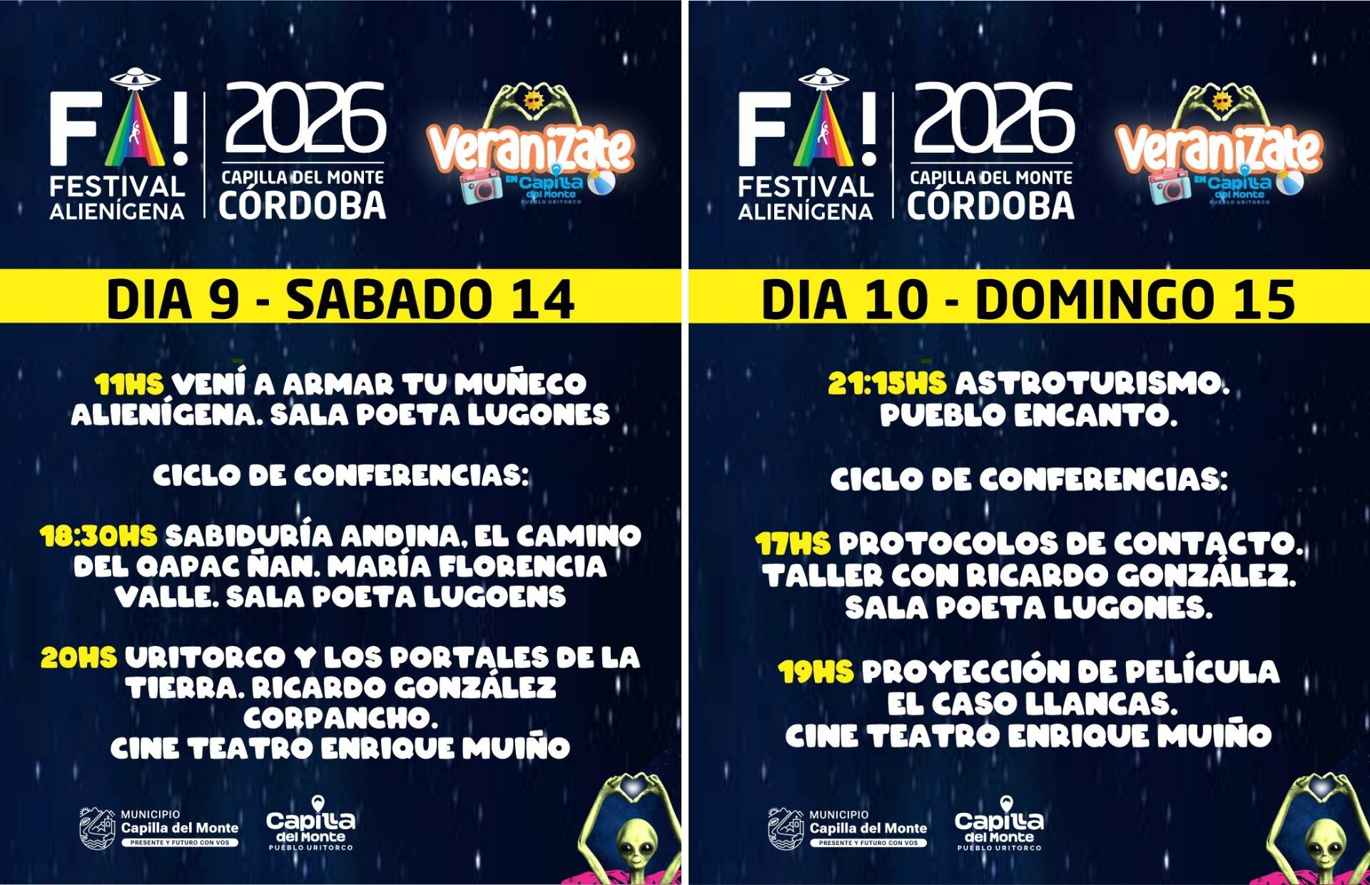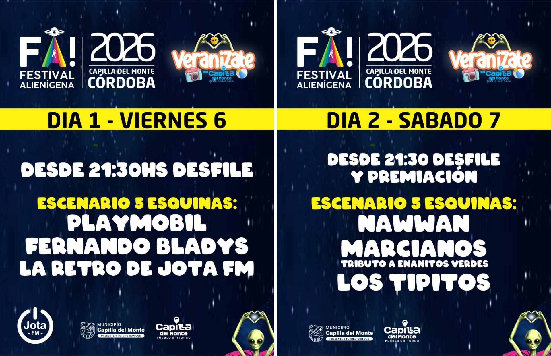 Capilla del Monte volverá a posicionarse como uno de los principales atractivos del verano cordobés con la décima edición del Festival Alienígena (FA!), que se desarrollará del viernes 6 al domingo 15 de febrero de 2026.